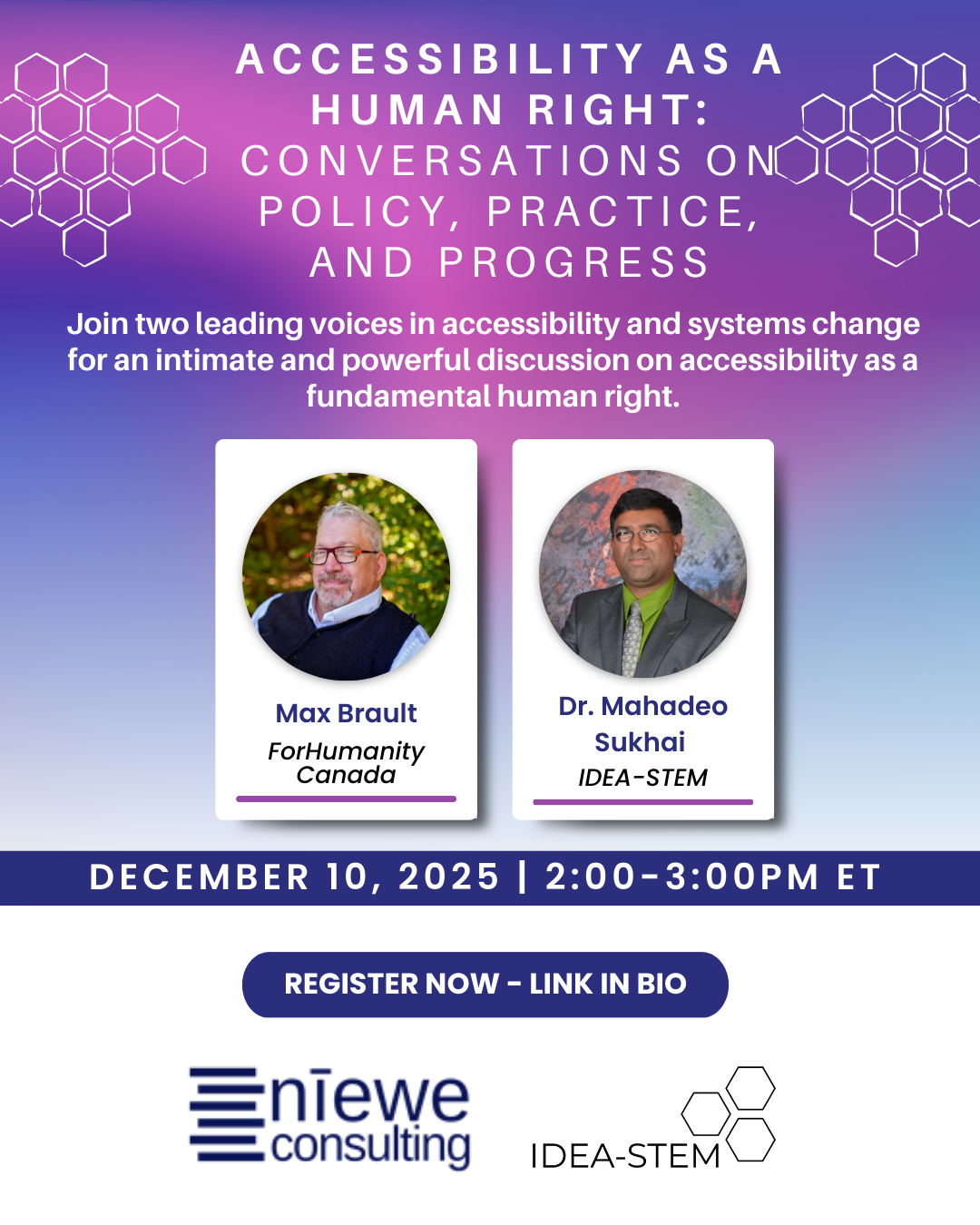Join Dr. Mahadeo Sukhai (IDEA-STEM) and Max Brault (ForHumanity Canada) for a powerful discussion on accessibility as a fundamental human right. Through the lens of the Accessible Canada Act and Max’s book The Race to the Starting Line, they’ll explore what progress has been made, what barriers remain, and what it will take to build a barrier-free future.